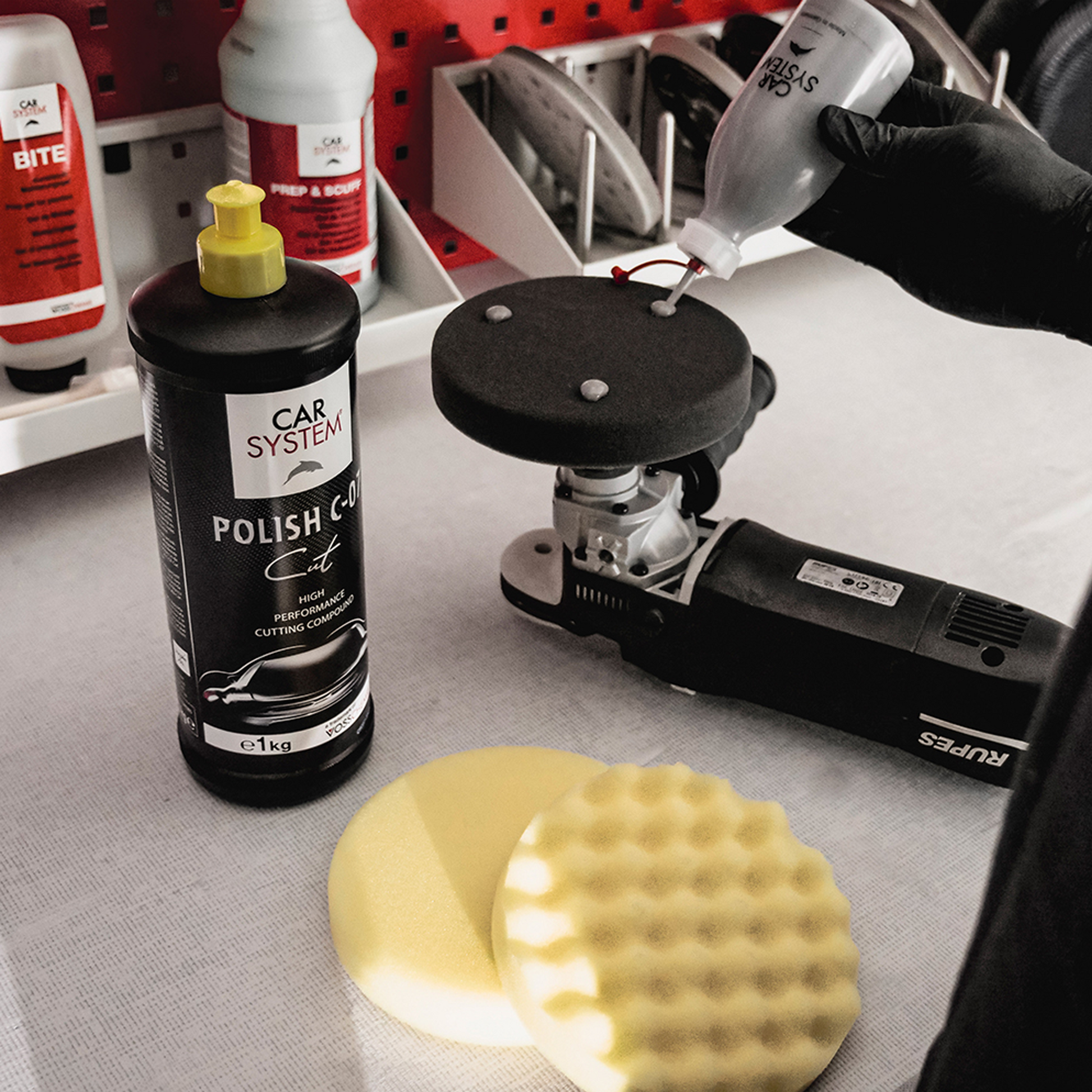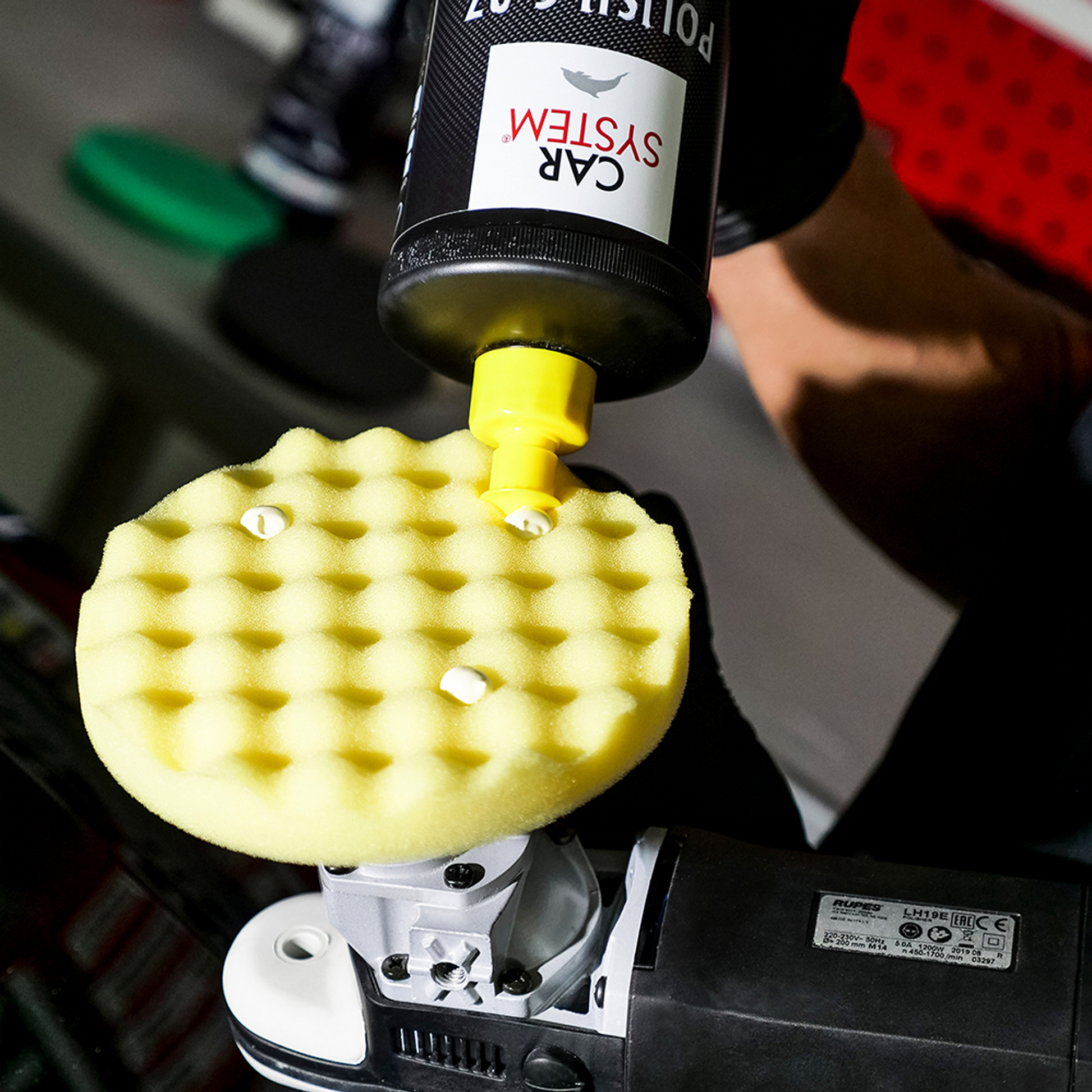 Wir empfehlen die Verwendung mit dem Carsystem Polish Foam Yellow und bei dunklen Farbtönen mit der Politur Carsystem Polish C-30 finish nachzuarbeiten.