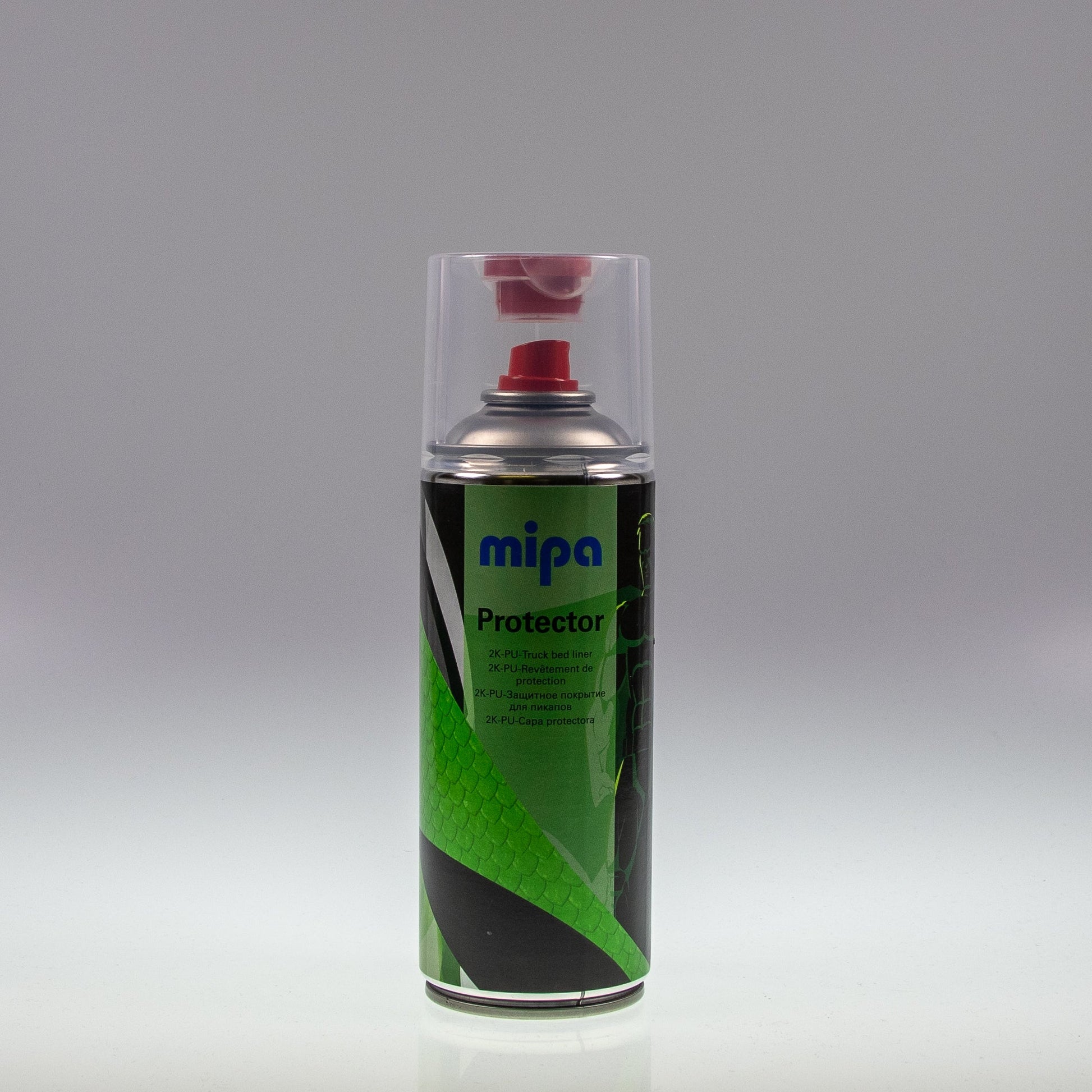 Mipa Protector 2K-Spray ist ein hochbelastbarer 2K-Polyurethan-Acryllack zur kratzfesten und robusten Beschichtung von Transportflächen (z. B. Pickup-Ladeflächen) und hochbelasteten Oberflächen an Nutzfahrzeugen, Geländewagen, Camping-Fahrzeugen, Anhängern und Geländefahrzeugen etc. im Farbton schwarz.