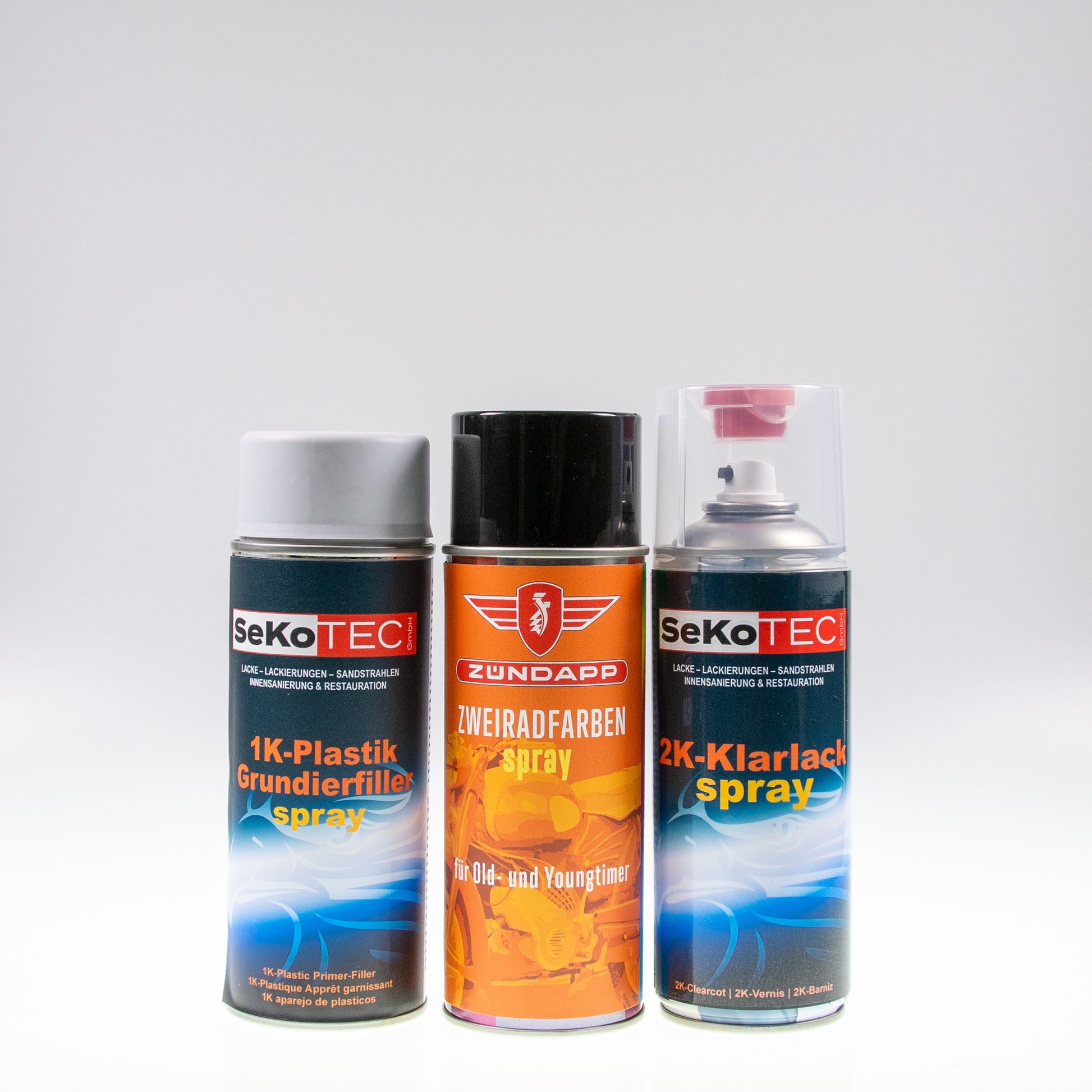 Zündapp-Farben Spraydose mit Plastik-Füller und 2K-Klarlack
